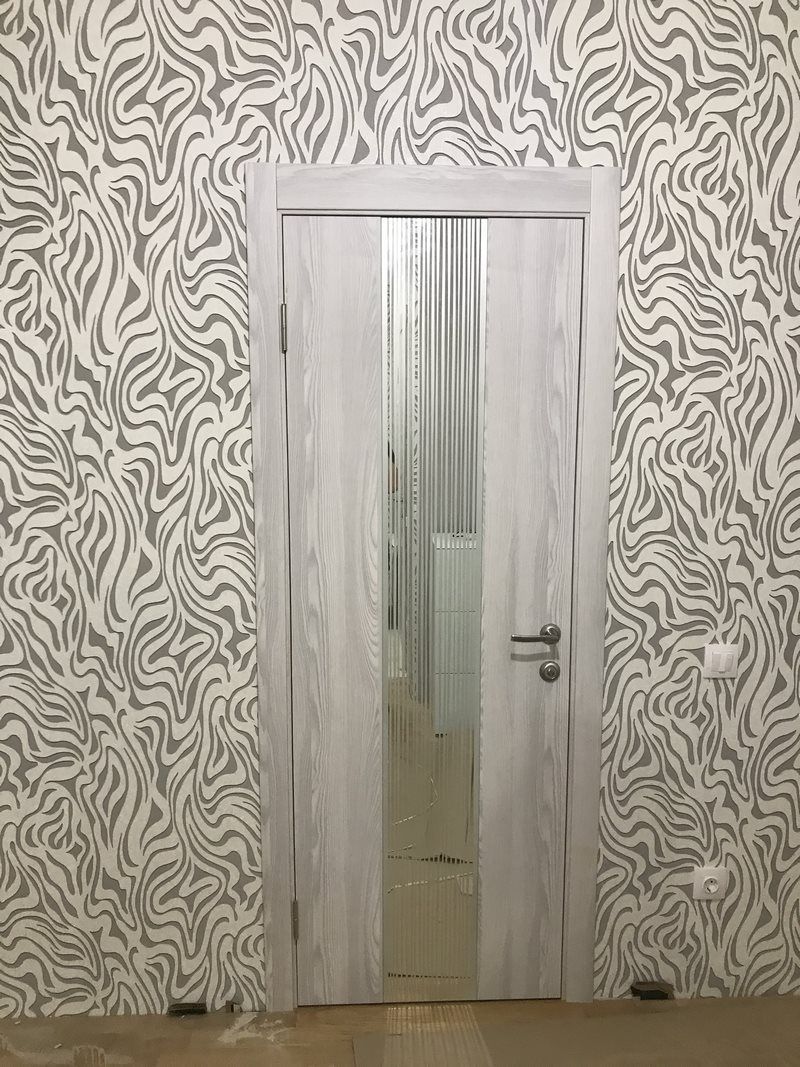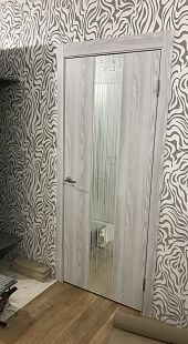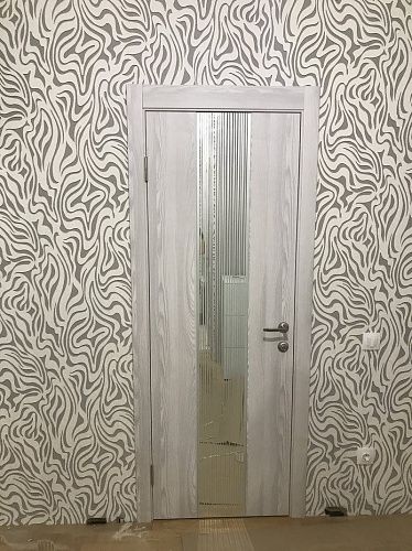 Дверь ПО EXZ 6E Клен айс стекло зеркало с рисунком из Экошпона COVERFLEX (Двери Нева) в Выборге с установкой и доставкой